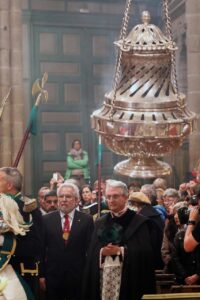 El pasado 30 de diciembre la S.A.M.I. Catedral de Santiago celebraba la Festividad de la Traslación de los Restos. Como es tradición, en la mañana de ese día se producía la Ofrenda Nacional al Apóstol Santiago, actuando como Delegado Regio D. Miguel Ángel Santalices, Presidente del Parlamento de Galicia.