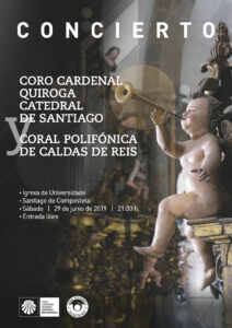 El próximo sábado, día 29 de junio, a las 21 horas en la Iglesia de la Universidad se celebrará un concierto conjunto del Coro Cardenal Quiroga de la Catedral de Santiago y la Coral Polifónica de Caldas de Reis.