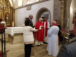 En la tarde-noche de ayer, la Archicofradía Universal del Apóstol Santiago celebraba su tradicional imposición de medallas con motivo de la festividad del martirio. La celebración tenía lugar, excepcionalmente, en la iglesia más antigua de Santiago (Iglesia de San Fiz de Solovio) en la que recibían la medalla 11 nuevos cofrades de diferentes nacionalidades: España, Portugal, Francias, Estados Unidos y Brasil.
