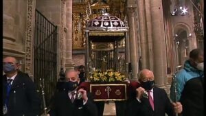 Las restricciones de aforo derivadas de la pandemia obligaron a que únicamente el Presidente de la Archicofradía pudiese estar presente durante la Ofrenda Nacional. Miembros de la Junta Directiva participaron también de la procesión portando la reliquia de Santiago Coquatrix.